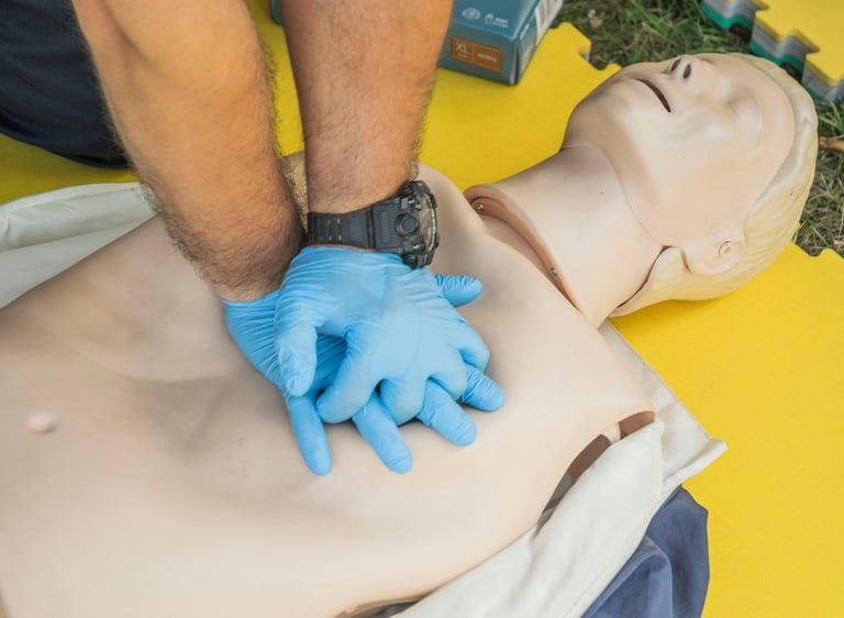 Performing CPR and safe AED use
